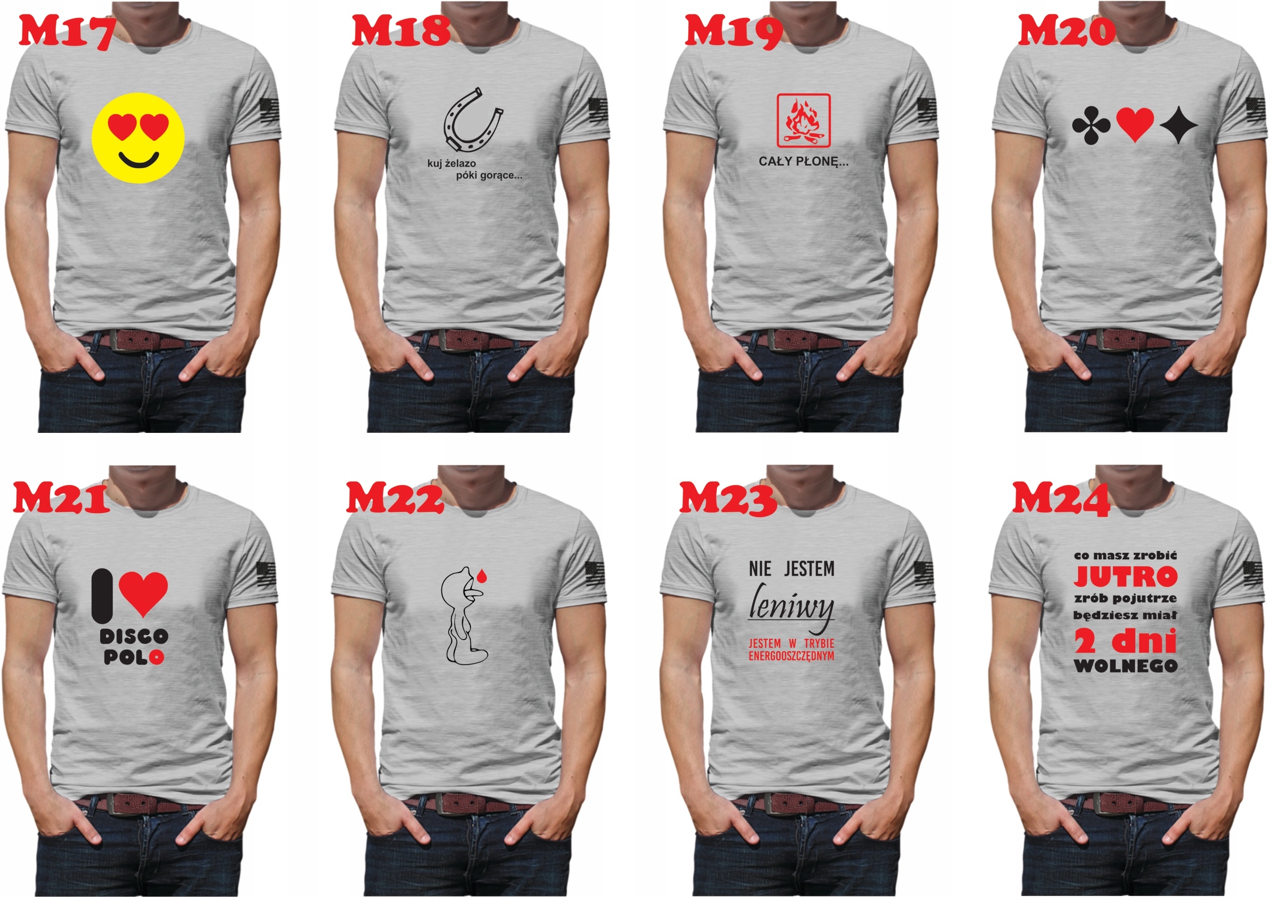 Wybierając model M100 po zakupie prosimy o podanie tekstu i jego koloru oraz kolor koszulki lub zapraszamy do kreatora online (link poniżej).
