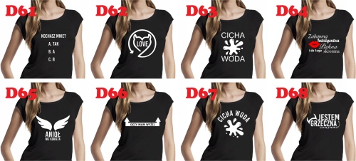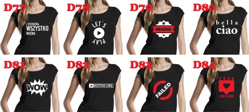 Wybierając model D100 po zakupie prosimy o podanie tekstu i jego koloru oraz kolor koszulki lub zapraszamy do kreatora online (link poniżej).