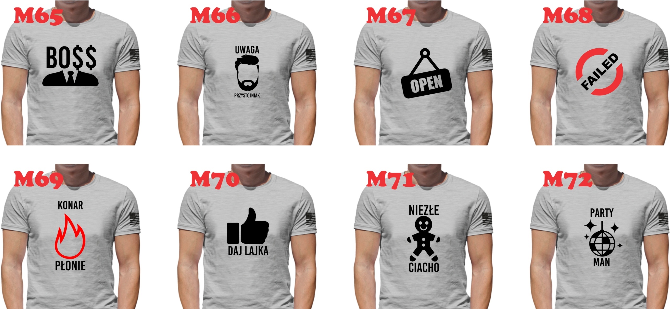 Wybierając model M100 po zakupie prosimy o podanie tekstu i jego koloru oraz kolor koszulki lub zapraszamy do kreatora online (link poniżej).