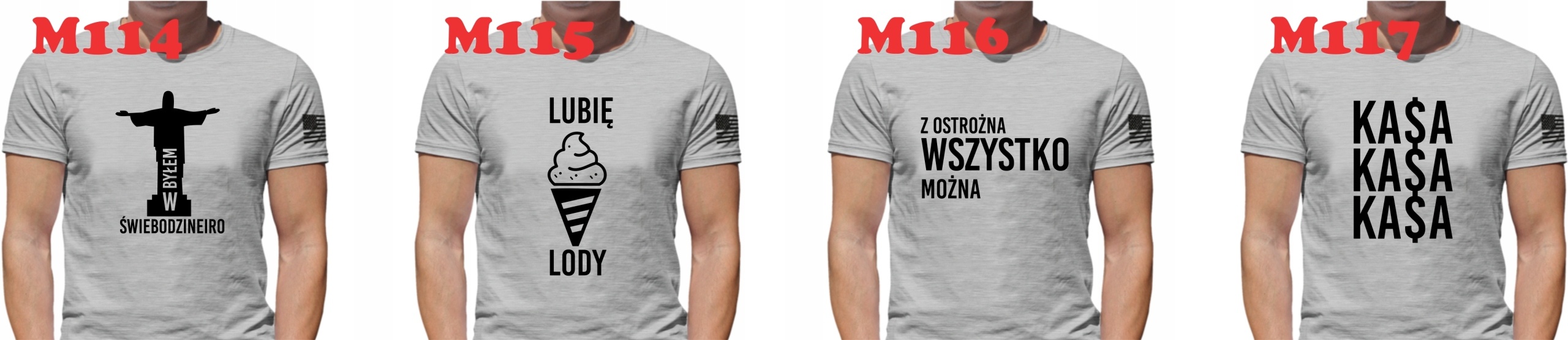 Wybierając model M100 po zakupie prosimy o podanie tekstu i jego koloru oraz kolor koszulki lub zapraszamy do kreatora online (link poniżej).