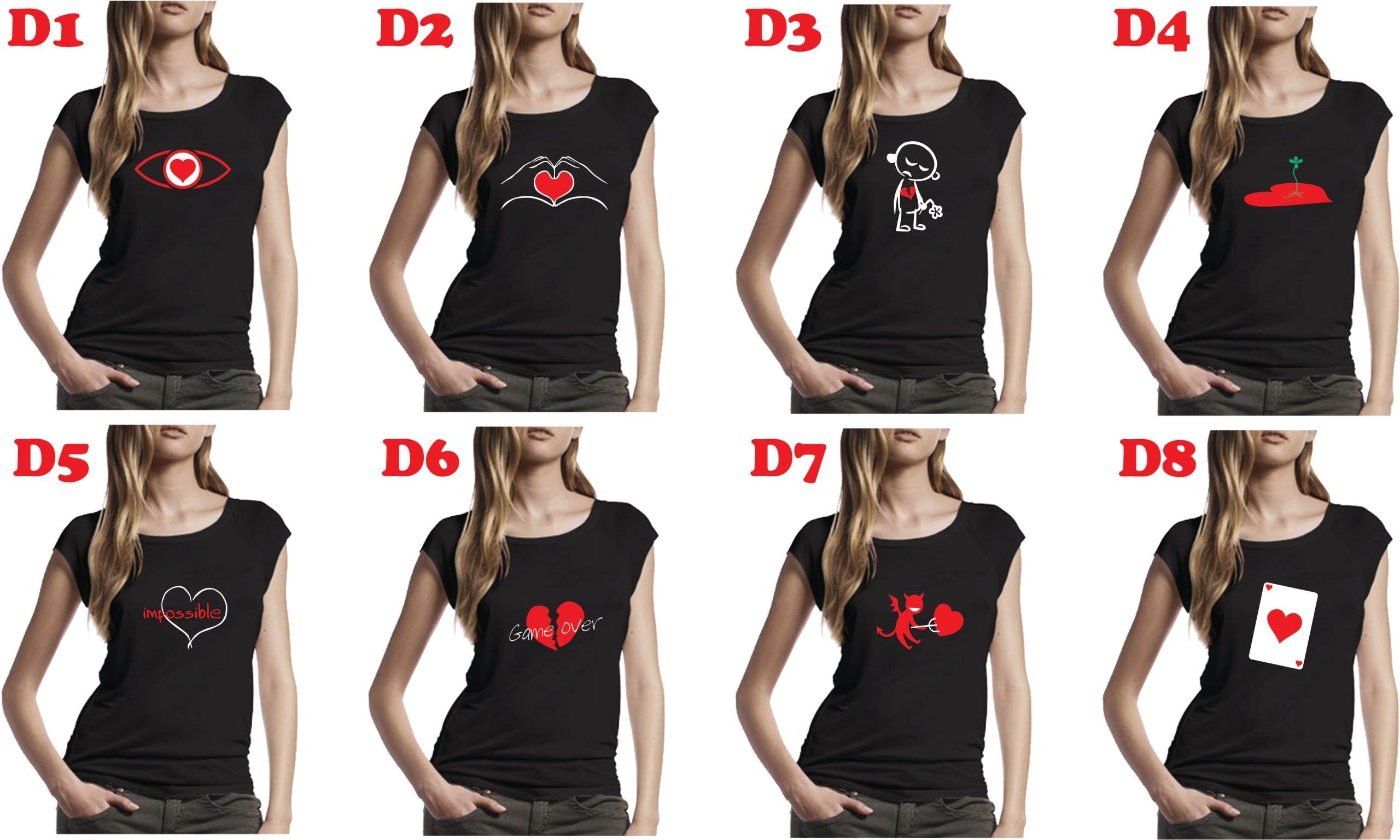 Wybierając model D100 po zakupie prosimy o podanie tekstu i jego koloru oraz kolor koszulki lub zapraszamy do kreatora online (link poniżej).