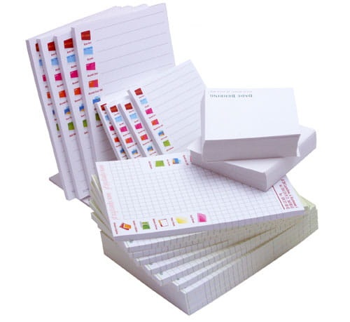 Wymiar 80x80mm/105x105mm, papier offset 80g, nadruk 4+0, klejony, bez okładki.