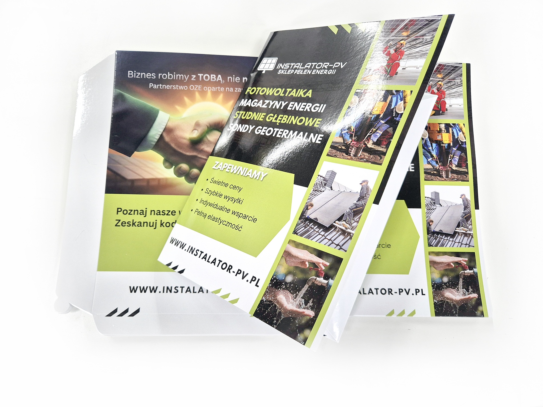 Zadrukowany w pełnym kolorze przód i tył, środek pozostaje bez nadruku.
